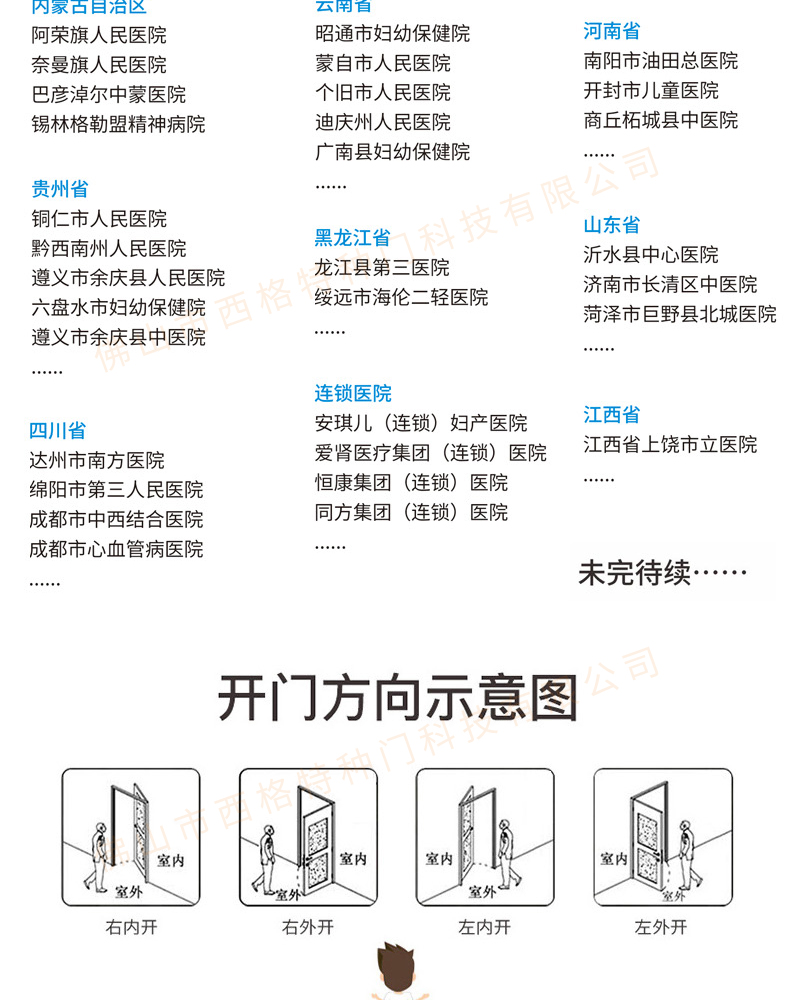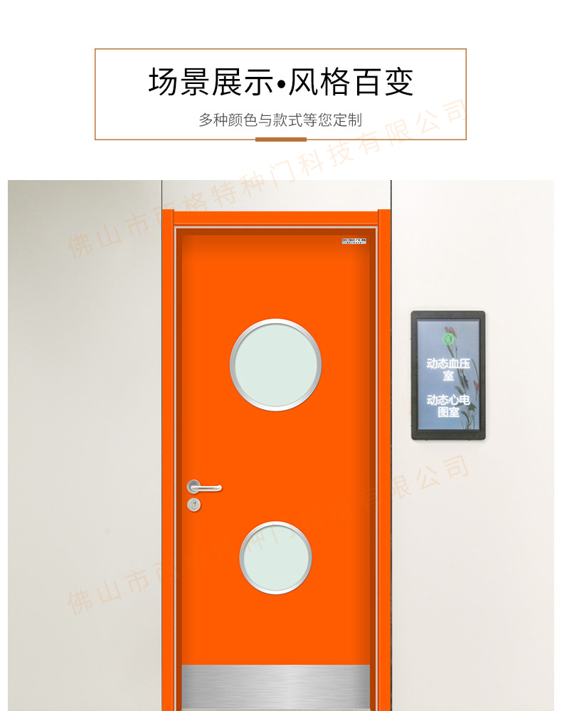 產品簡介:chnsige西格特種門,專業生產醫院門,醫院診室門,醫院辦公室門,醫院衛生間門,木質醫院門,鋼質醫院門,多鐘款式、顏色,尺寸可定制。