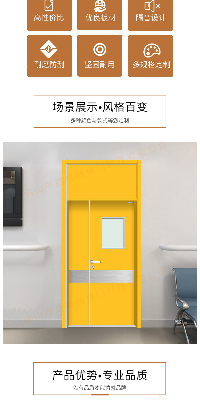產品簡介:chnsige西格特種門,專業生產病房門,醫院病房門,醫院病房木門,病房木門,木質病房門,鋼質病房門,多鐘款式、顏色,尺寸可定制。