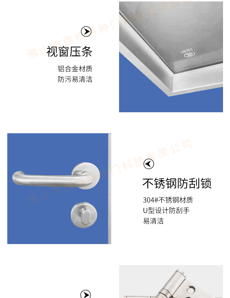 產品簡介:chnsige西格特種門,專業生產病房門,醫院病房門,醫院病房木門,病房木門,木質病房門,鋼質病房門,多鐘款式、顏色,尺寸可定制。